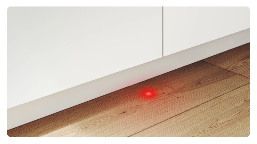 InfoLight® emituje czerwone światło na podłodze podczas cyklu zmywania, dzięki czemu wiadomo, kiedy zmywarka pracuje. Po zakończeniu programu światło automatycznie gaśnie. Dzięki temu nie trzeba uchylać drzwi urządzenia, aby sprawdzić czy zmywarka zakończyła pracę.