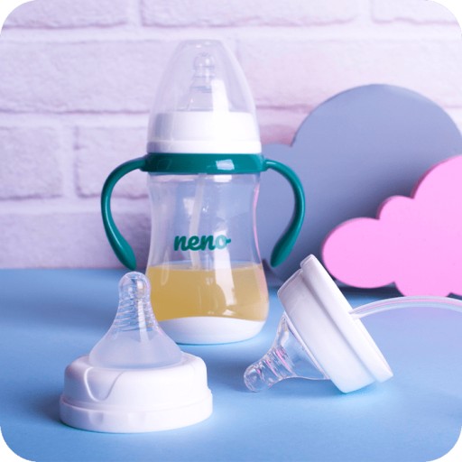 Wielozadaniowe butelki do karmienia i nauki picia Neno Bottle to sposób nie tylko na jedzenie czy picie, ale także relaks, ćwiczenie warg i języka oraz naukę chwytania. Neno Bottle 240 ml przeznaczona jest dla dzieci pomiędzy 3-6 miesiącem życia, a Neno Bottle 300 nadaje się dla dzieci, które ukończyły 6 miesięcy.