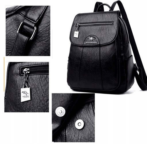 ✅ Plecak na zewnątrz posiada jedną kieszonkę na klapie zamykaną na zamek, można w niej zmieścić np. klucze