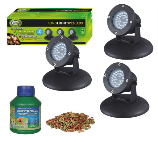 Aqua Nova NPL2-LED3 - 3xReflektory LED oświetlenie do oczka wodnego lub ogrodu + CZUJNIK ZMIERZCHU
