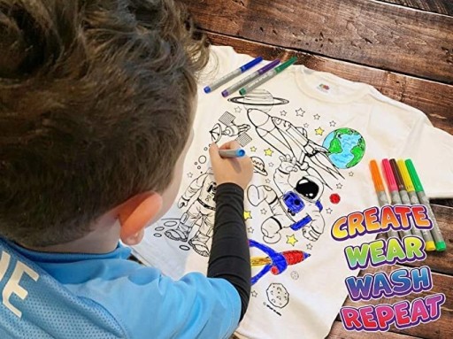 Magiczne kolory: Do każdej koszulki dołączonych jest 10 nietoksycznych, zmywalnych pisaków: