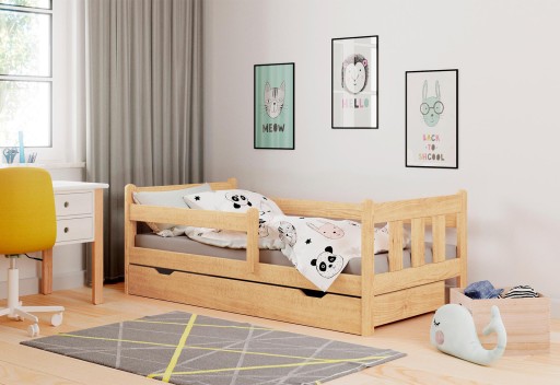 Łóżko dziecięce MARINELLA wyposażone zostało w wysuwaną szyfladę oraz bardzo funkcjonalną listwę zabezpieczającą powierzchnię spania. Łóżko wykonane zostało z lakierowanego litego drewna sosnowego. Przygotowane w kolorze Sosna.