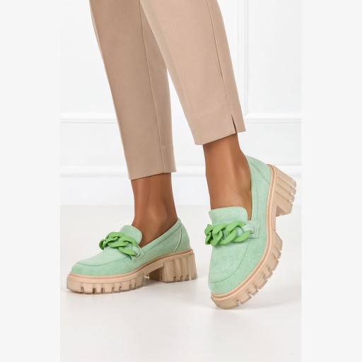 Zielone mokasyny z łańcuchem na platformie Casu G23X4-G