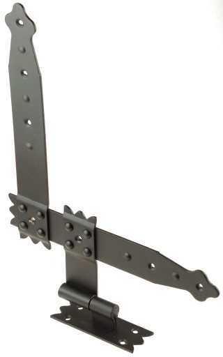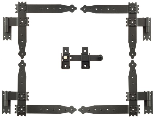 Tych 8 elementów, tworzy funkcjonalny solidny komplet w podhalańskim stylu. Zawias nadaje się do montażu w drewnie, metalu czy cegle. Zapewnia płynny ruch okiennic, w momencie ich zamykania i otwierania.