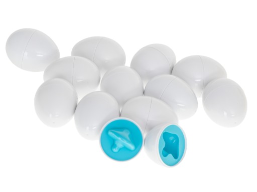 W zestawie znajdziesz 12 jajek ukrywających pod skorupką różne kształty i kolory.