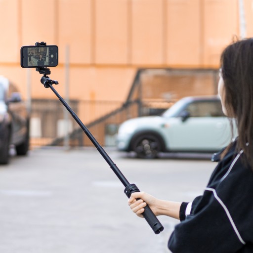 Jeśli chcemy filmować lub fotografować własną postać, a odległość jaką możemy uzyskać na wyciągniętej dłoni nie jest wystarczająca to niezbędnym elementem będzie monopod / wysięgnik teleskopowy.