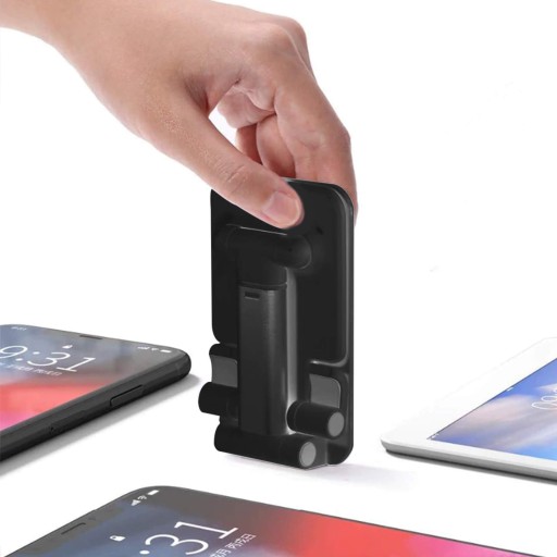 Stojak na telefon komórkowy/tablet posiada wymiary po złożeniu:11 x 7 x 3 cm , dzięki tak niewielkim rozmiarom zajmuje mało miejsca, dlatego będziesz mógł go łatwo przechowywać w szufladzie lub w walizce w trakcie podróży. Zręczność urządzenia pozwoli Tobie w wygodny sposób przenosić go w trakcie pieszej wycieczki.