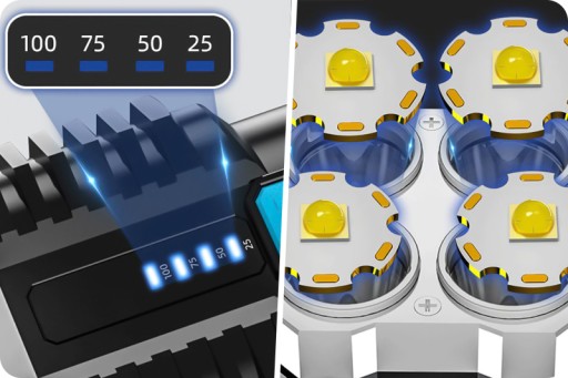 Nie daj się zaskoczyć! Latarka posiada diody kontrolne do monitorowania stanu naładowania akumulatorów.