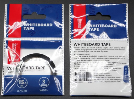Taśma samoprzylepna pomocna przy tworzeniu tabel i grafik na tablicach suchościeralnych.