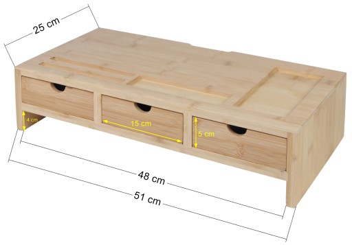 Bambusowa podstawka pod monitor wykonana wyselekcjonowanego najwyższej jakości drewna bambusowego. Drewno pokryte przyjazną dla środowiska. Najwyższa jakość wykonania sprawia ,ze podstawka nie chybocze się.