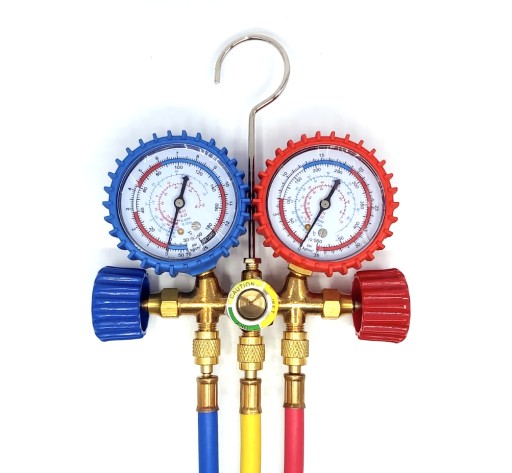 Zestaw manometrów R12, R22, R-404a, R134a wraz z wężami 90cm