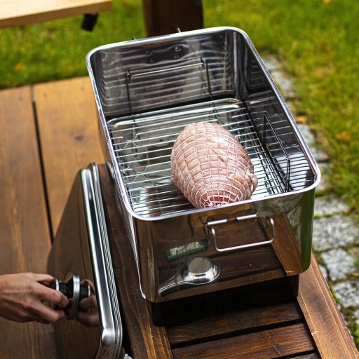 - Porcja dla każdego - uniwersalna domowa wędzarnia z głęboką brytfanną pozwoli Ci na przygotowanie pysznych wędzonych ryb, mięs, serów i wędlin nawet na niewielkim balkonie. 3 ruszty i dwa palniki pozwolą Ci na urządzenie prawdziwej świątecznej uczty!
