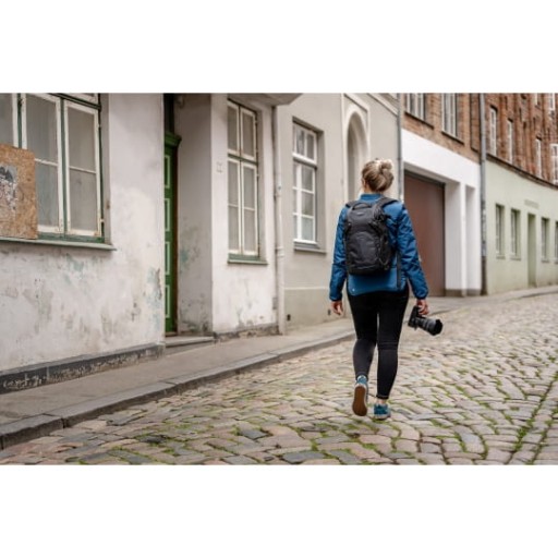 Plecak wyposażony został w wygodne, regulowanej długości szelki z pasem ściągającym na wysokości piersi oraz rączkę w górnej części. W komplecie znajduje się pasek za pomocą którego możemy przyczepić statyw z prawego lub lewego boku plecaka.
