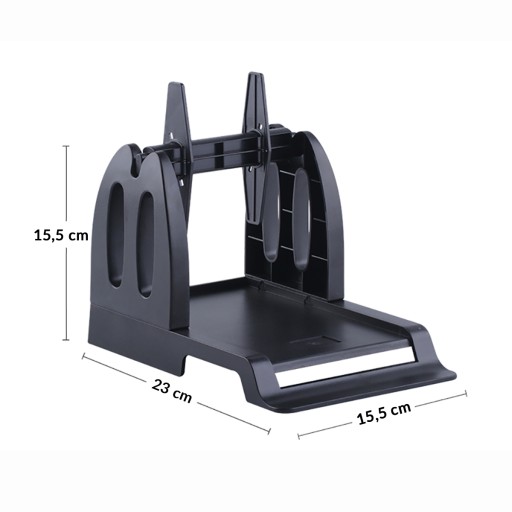 W warunkach hurtowych oraz sklepowych bardzo często drukuje się sporej ilości etykiety. Jednak nie wszystkie drukarki termiczne mają wystarczający pojemnik na rolki papieru etykietowego. Z tego powodu zachodzi potrzeba częstej wymiany rolki na nową, co może być dość uciążliwe. Sprawę można jednak rozwiązać w bardzo prosty sposób. Nasz podajnik rolek jest zewnętrznym wsparciem dla drukarek etykietowych. Jego konstrukcja jest bardzo prosta, a jednocześnie stabilna i funkcjonalna. Uniwersalna postać akcesorium pozwala na postawienie go do różnych modeli drukarek.