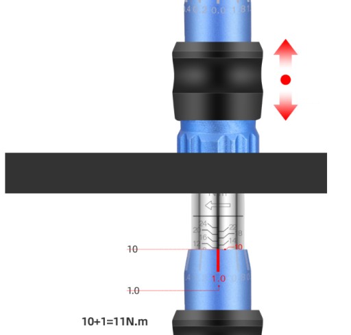 3. sposób regulacji wymaganej wartości momentu obrotowego: blokada przesuwana w górę (po zablokowaniu nie można obrócić uchwytu); odblokowanie przesuwane w dół (obróć uchwyt, aby wyregulować moment obrotowy).