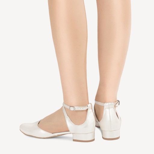 Perłowe ślubne balerinki z paskami Bonnie ivory