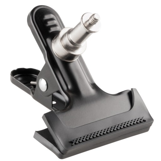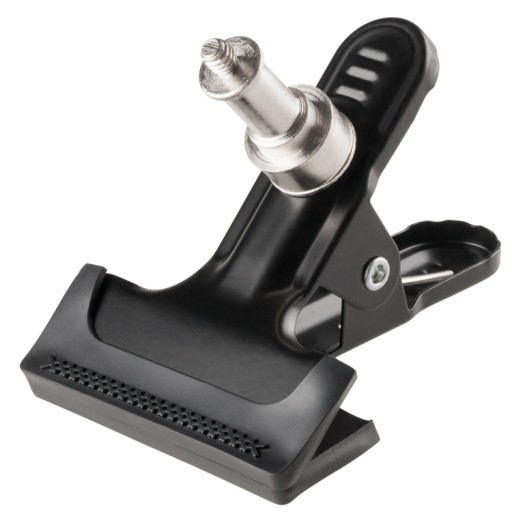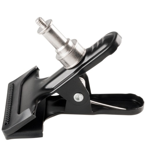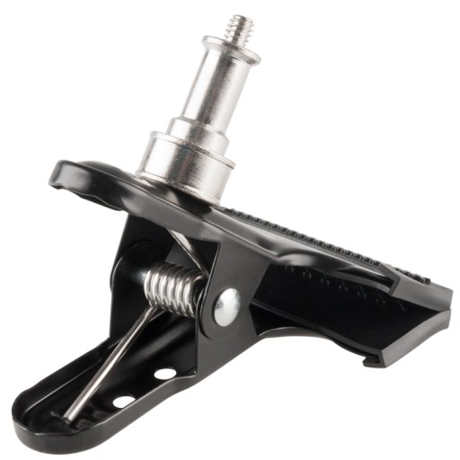 Uniwersalny klips z trzpieniem 16 mm o gwincie 1/4” pozwoli na zamontowanie oprawki z żarówką błyskową, dodatkowych uchwytów, ale może być również wykorzystywany jak zwykły spinacz służący do mocowania blatu stołu bezcieniowego czy tła. Tylko od Ciebie zależy w jaki sposób go użyjesz. Maksymalne rozwarcie 5 cm, pozwoli na zamocowanie klipsa na powierzchniach o grubości do 4,5 cm. Klips znajdzie zastosowanie m.in. w fotografii makro, czy fotografii bezcieniowej.