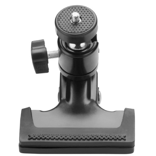 Uniwersalny klips fotograficzny wyposażony w głowicę kulową z trzpieniem 1/4". Do głowicy klipsa dokręcisz szereg drobnych potrzebnych w czasie pracy akcesoriów - dodatkowe oświetlenie LED, mikrofon, kostki mocowania lamp błyskowych, kostki synchronizacyjne i z fotocelą. Trzpień 1/4" pasować będzie również do gniazda statywowego małych aparatów kompaktowych i lamp reporterskich. Gumowe wykończenie szczęk klipsa zapobiegnie jego zsunięciu z pionowych poprzeczek.