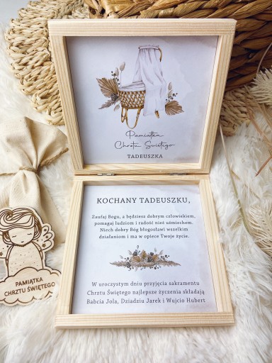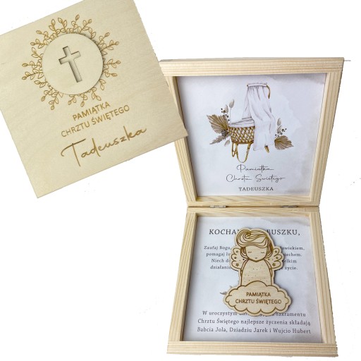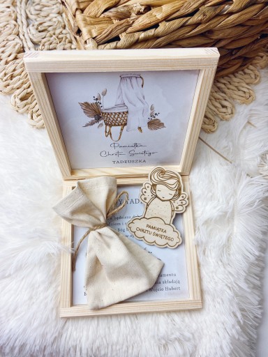 PAMIĄTKA CHRZTU W DREWNIANYM PUDEŁECZKU
