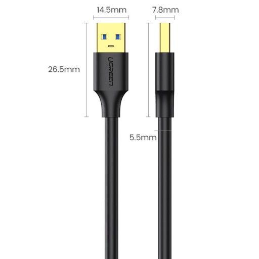 Kabel Ugreen USB 3.0 / USB-A (typ A męski), 5 Gbps, 3 m, czarny