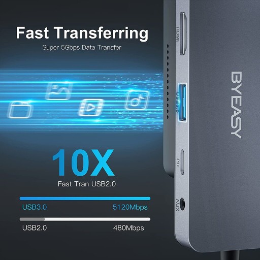 • Superszybki transfer i szybkie ładowanie: port USB 3.0 z superszybkim transferem danych 5 Gb/s, 10 razy lepszy niż USB 2.0. Zwiększyliśmy efektywność naszej pracy. Jest wyposażony w generator ultra-inteligentnych układów scalone, port USB-C obsługujący szybkie ładowanie PD 100 W. Jest bardzo podobny do MacBook Pro/Air lub innych urządzeń USB-C.