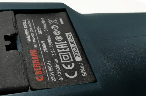✅Młotowiertarka BERHARD 2600W przeznaczona do kucia , wiercenia, skuwania tynków , kafelków oraz pracach remontowych i rozbiórkowych
