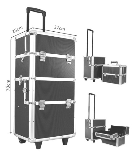 DUŻY KUFER KOSMETYCZNY TROLLEY NA KÓŁKACH Z RĄCZKĄ