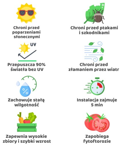 Perfekcyjny w uprawie warzyw i innych roślin, skutecznie chroni je w każdych warunkach pogodowych.