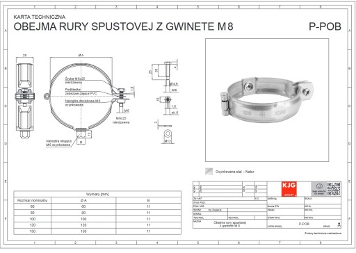 OBEJMA OCYNK DO RURY SPUSTOWEJ FI 80 MM GWINT OBEJMY DO ŚRUBY M8 PRODUKT MARKI KJG