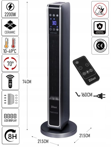 Ceramiczny grzejnik wieżowy to urządzenie, które znajdzie zastosowanie w Twoim mieszkaniu przez okrągły rok. Możesz ustawić temperaturę nawiewu w zakresie od 15 do 49°C.