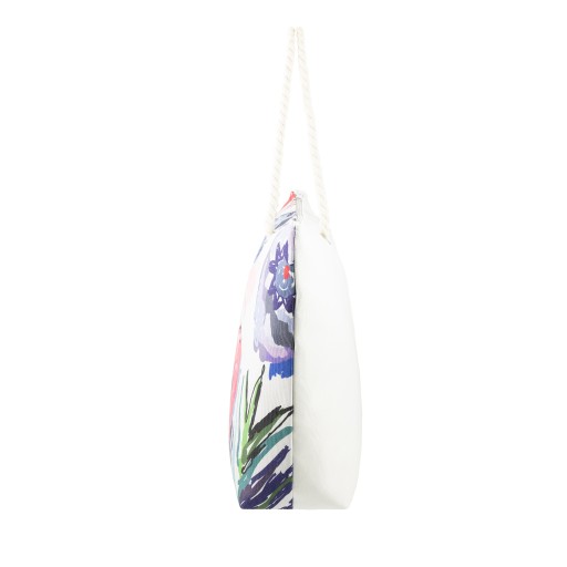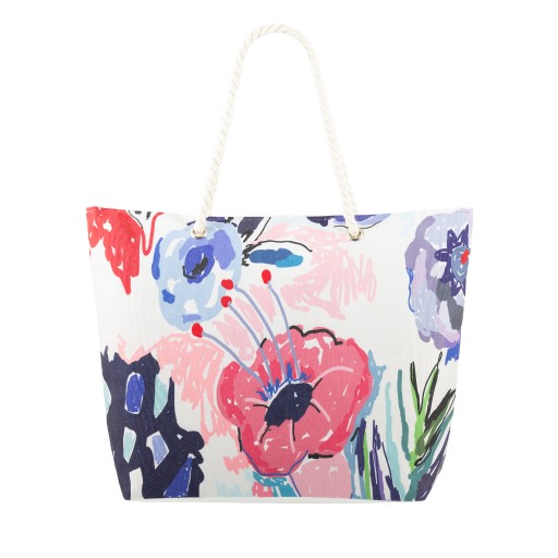 Płócienna, wielokolorowa torba plażowa w kwiaty, marki Bellugio.