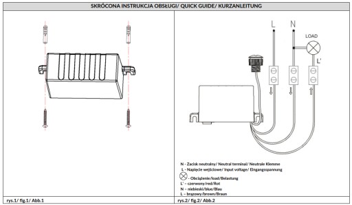 - Podłącz przewody zgodnie ze schematem podłączenia (rys. 2).