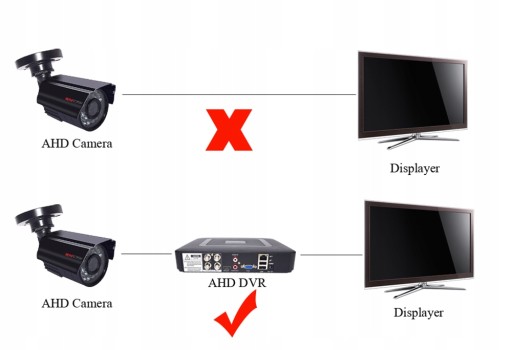 2. Upewnij się, że masz AHD DVR dla kamer AHD. bez niego nie będziesz mógł oglądać ani nagrywać. To jest bardzo bardzo ważne !!! Pls nie kupuj go, jeśli nie masz AHD DVR Lub możesz kupić nasz DVR. !!!