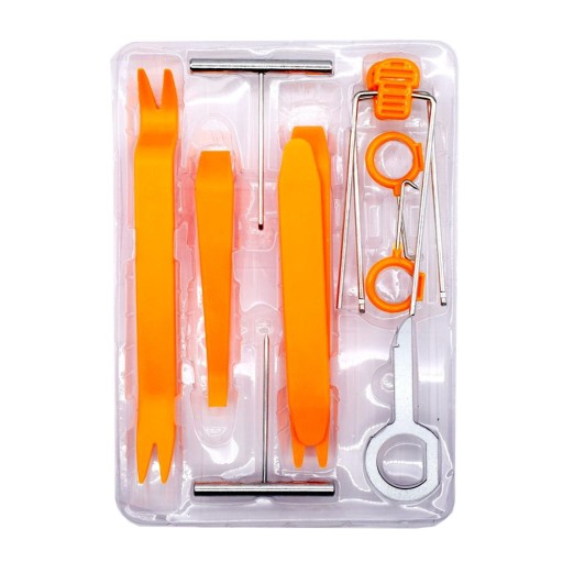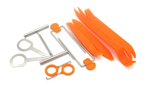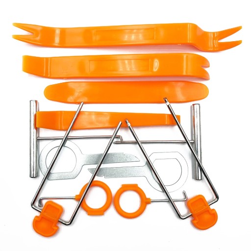 Materiał, z których wykonane są narzędznia dobrano w taki sposób, aby podczas demontażu elementów wnętrza pojazdu nie udzkodzić ich, pozostawiając ślady np. na tapicerce. W zestawie znajdują się także klucze do demontażu najpopularniejszych fabrycznych radioodbiorników takich firm jak VW SEAT SKODA AUDI OPEL FORD itd.