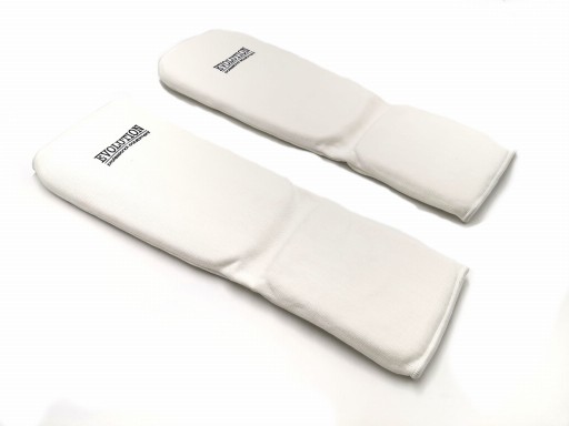 Elastyczne ochraniacze na goleń. Wykonane z najwyższej jakości komponentów. W przedniej części wypełnione pianką, by chronić kość piszczelową. Zestaw zawiera 2 sztuki. Kolor biały.