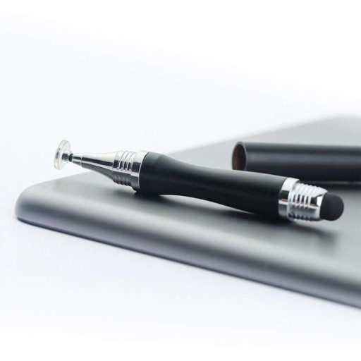 Rysik 2w1 Alogy pojemnościowy dotykowy do ekranu telefonu tabletu to eleganckie i poręczne urządzenie z precyzyjnymi końcówkami w formie gumki. Zapewni wysoki komfort pracy, bardziej dokładny niż dotyk palca, bez smug na ekranie.