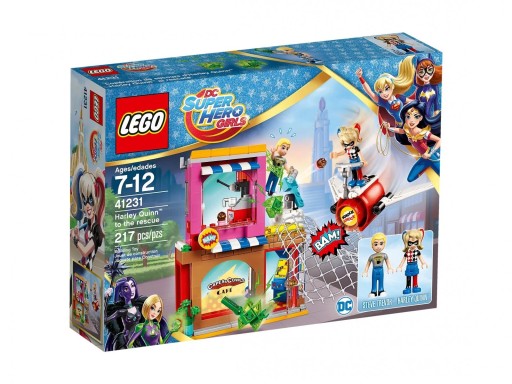 Zestaw klocków LEGO DC Super Hero Girls Harley Quinn™ na ratunek został pokazany w 2017 roku i składa się z 217 klocków LEGO®. W opakowaniu znajdziesz 2 minifigurki. Zestaw klocków przeznaczony jest dla dzieci i młodzieży powyżej 7 roku życia. Kod EAN klocków LEGO® 41231 to: 5702015814287.
