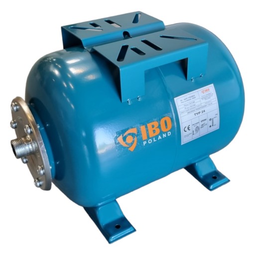 Poziome zbiorniki przeponowe typ 24–150 służące do przechowywania wody w układach wodociągowych. Naczynia przeponowe IBO przeznaczone są do stabilizacji ciśnienia wody oraz zwiększenia czynnej objętości instalacji wodociągowej. Stosowane do współpracy z pompami o parametrach odpowiadających parametrom zbiornika. Zbiorniki zostały wykonane z grubej stali węglowej i pokryte specjalnym lakierem przeciwdziałającym korozji. Wewnątrz zbiorników znajdują się gumowe przepony EPDM, tworzące membranę między wodą znajdującą w jej wnętrzu a płaszczem zewnętrznym zbiornika. Pomiędzy membraną a obudową zbiornika znajduje się sprężone powietrze, które pod ciśnieniem uwalnia wodę ze zbiornika. Wykorzystując zbiorniki w zestawach hydroforowych, można ograniczyć liczbę uruchomień pompy w danym okresie czasu, co korzystanie wpływa na żywotność całej instalacji. Objętość wody jaka znajduje się we wnętrzu, jest różnicą pomiędzy objętością obudowy, a objętością powierza znajdującego się wokół membrany.