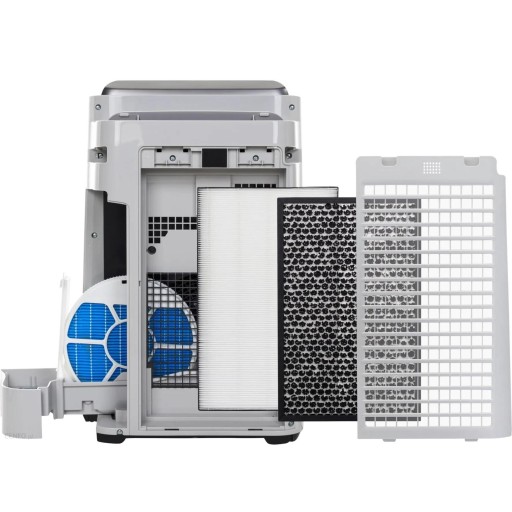 - Filtr wodny: Innowacyjne połączenie filtracji i nawilżania. Mata ewaporacyjna dba o optymalny poziom wilgotności, zapewniając komfort i świeżość.