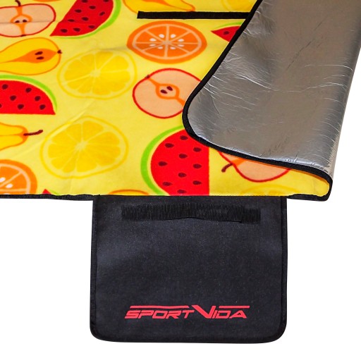 - KOC PIKNIKOWY- PLAŻOWY SPORTVIDA o wymiarach 200 × 200 cm to koc o dużej powierzchni, który pomieści całą rodzinę lub grupę przyjaciół.