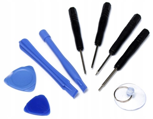 - Dodatkowo w skład zestawu wchodzą narzędzia do podważania, otwierania ekranu i odłączania wewnętrznych komponentów.
