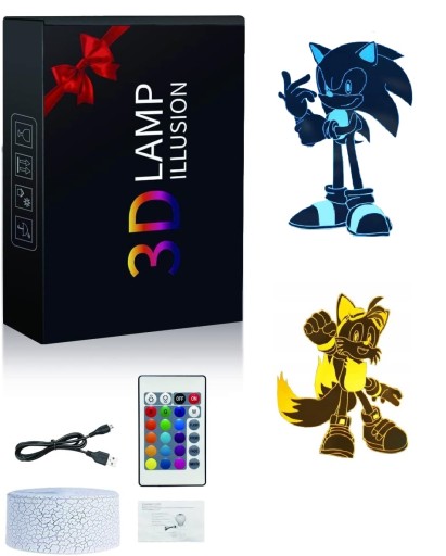 Lampka nocna LED 3D SONIC hologram 2xpanele ŚWIATŁO LED DEKORACJA USB PILOT