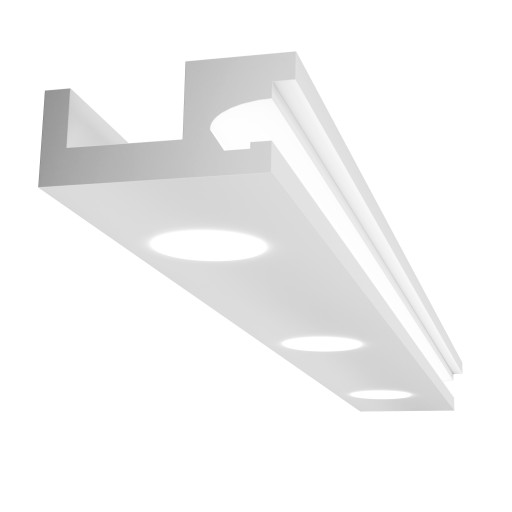 Listwa dostosowana jest do montażu taśmy LED oraz halogenów. Dzięki tej listwie możemy jednocześnie oświetlać sufit jak i ścianę. W miejscu przeznaczonym na taśmę LED listwę należy wykleić metalizowaną taśmą aluminiową, co zapewni nieprzebijanie światła przez listwę, jak również zadziała jako element odbijający strumień światła. Używając światła LED o zimnym odcieniu spowoduje to wrażenie chłodniejszego wnętrza. Natomiast oświetlenie LED w ciepłych odcieniach stworzy w pomieszczeniu nastrojowy klimat.