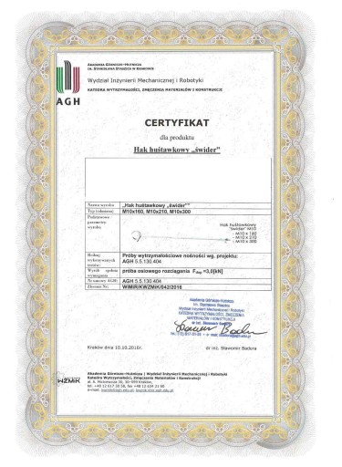 Produkt uzyskał certyfikat AGH co zapewnia najwyższą jakość :