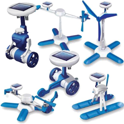 Ten wyjątkowy zestaw rozbudza kreatywność i uczy wykorzystania energii słonecznej do działania różnego typu urządzeń, w tym przypadku do zasilania silniczka elektrycznego zabawki.