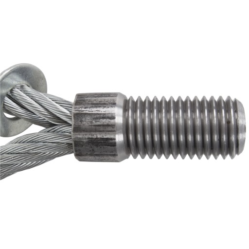 WYKONANIE: Pętla linowa z gwintem do podnoszenia w ciągu poprzecznym tylko do 45°, są wykonane z lin stalowych mocno zaciśniętych w gwintowanej złączce wg standardu ISO/DIN. Produkowane są w wersji stalowej z tuleją z gwintem okrągłym-typ Rd. Przy mocowaniu pasuje do wstawionego na stałe stalowego gniazda kotwicznego w prefabrykacie o tym samym kształcie i rozmiarze gwintu. Występuje w wersjach DOR:0,5-12,5 tony w gwincie okrągłym Rd12 - Rd52.