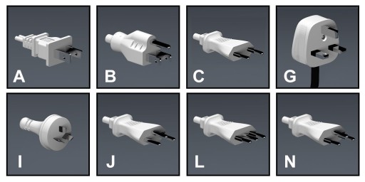W instalacjach sieci elektrycznych w różnych krajach stosuje się różne napięcia i różne typy złącz. Międzynarodowa Komisja Elektrotechniczna (IEC) definiuje literowo od A do N 14 typów złącz stosowanych w różnych krajach.