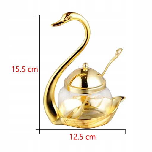 Posiada łabędzia stojak na szklany pojemnik. Słoik można wyjąć i posiada łyżkę.