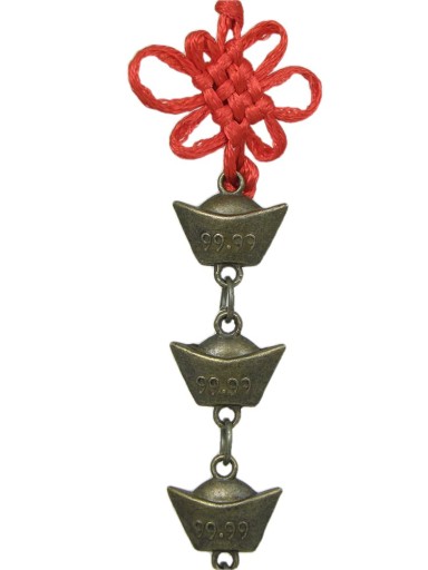 Zawieszka składająca się z trzech starochińskich sztabek złota, jest symbolem bogactwa i powodzenia. Pomaga w realizacji planów życiowych i pomyślnym rozwiązywaniu problemów, zapewnia opiekę. Przyciąga sukcesy we wszystkich dziedzinach życia, bardzo mocny znak