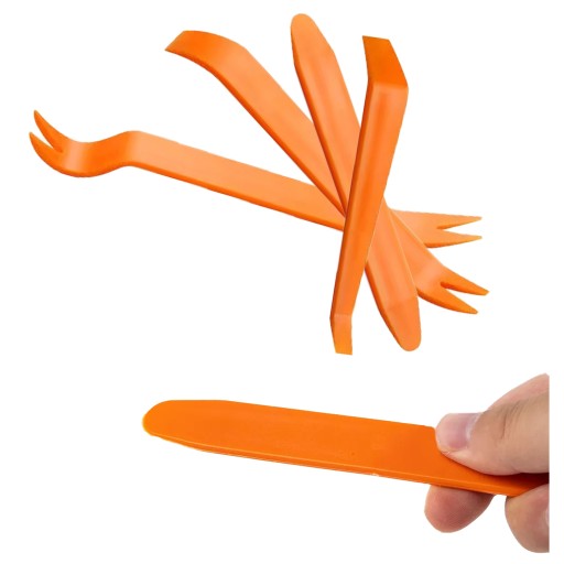 Zestaw 11 ściągaczy o różnej długości i kształcie + łom 22cm do bezpiecznego demontażu tapicerki, listew samochodowych, osłon drzwi itp. Szczególnie polecane do prac w serwisach samochodowych, blacharskich, lakierniczych i car detailingu.